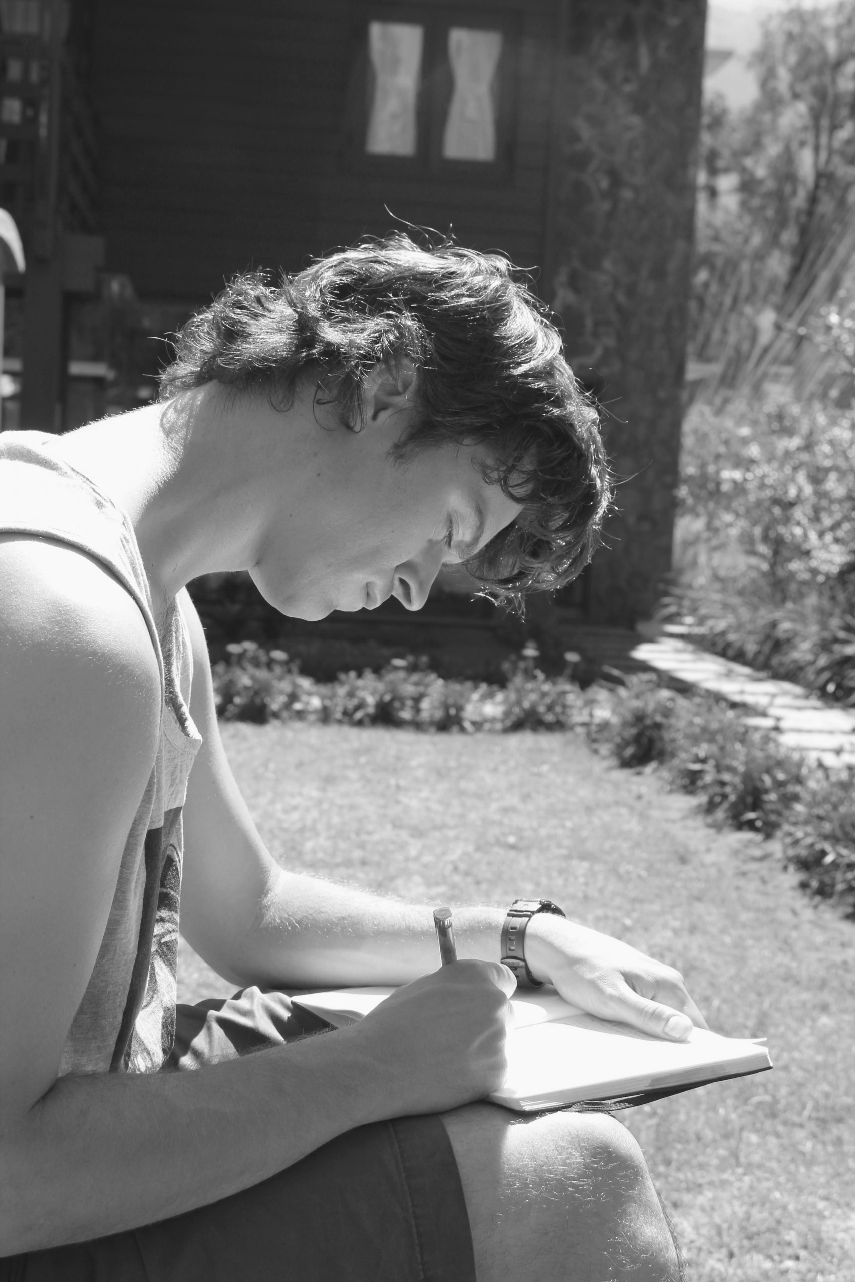 • Mit Block und Bleistift